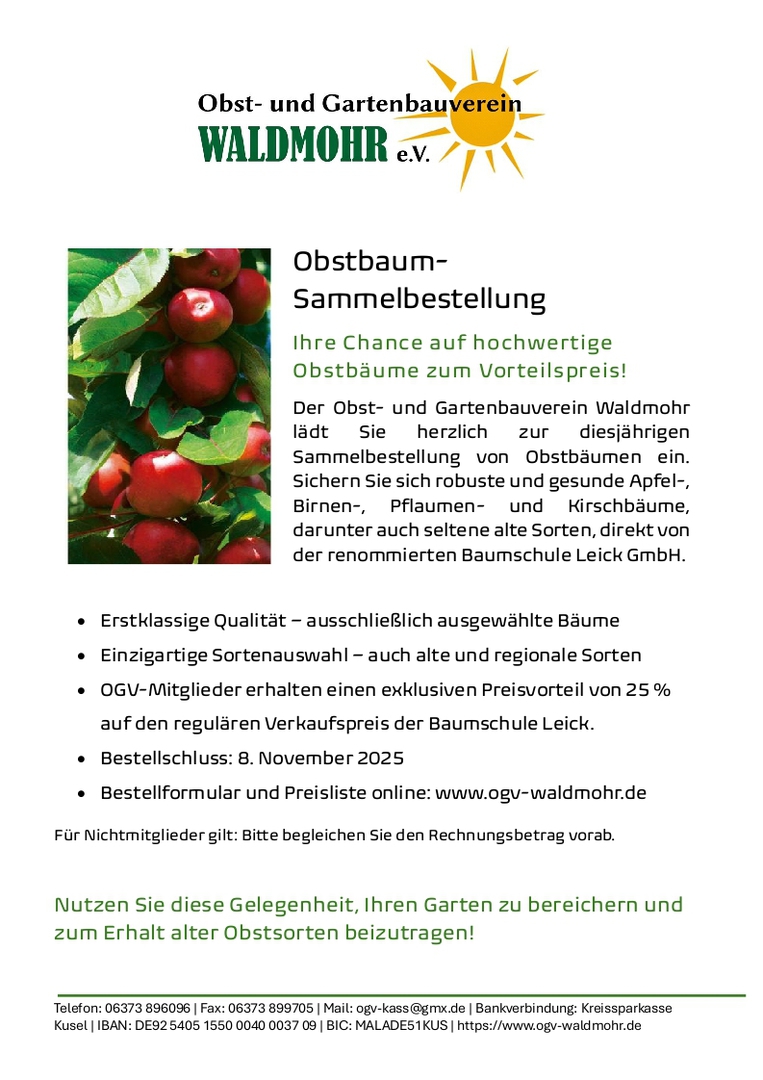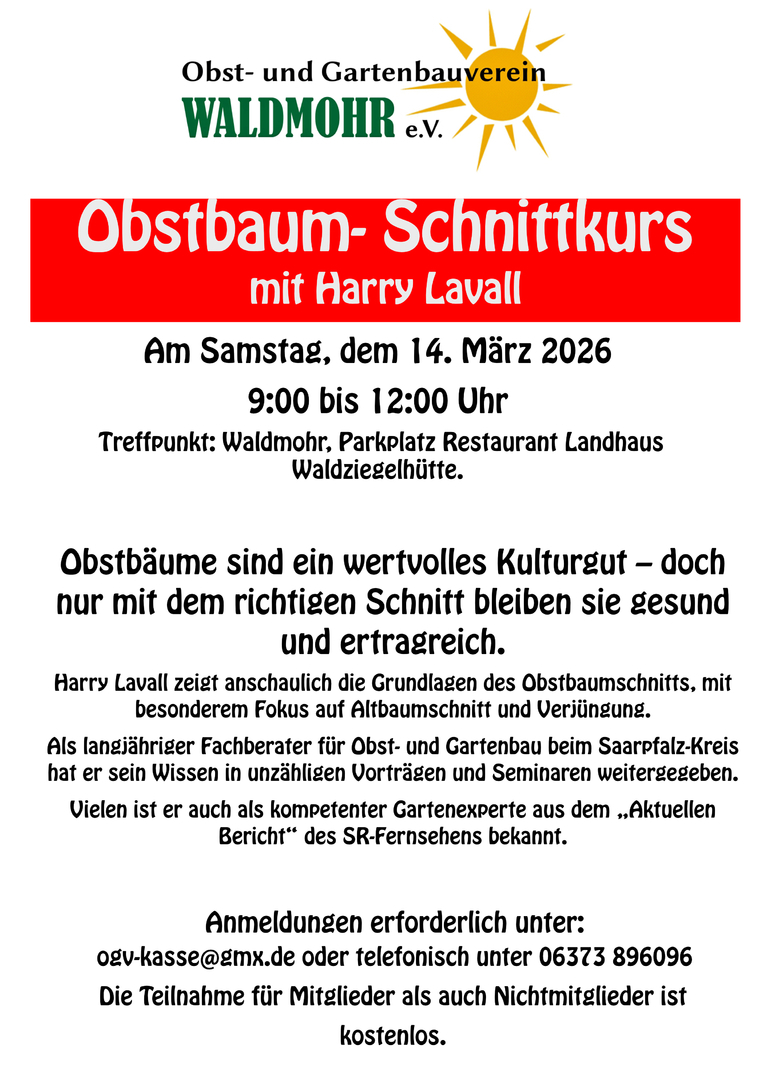 tragen somit zur Pflege der Kulturlandschaft in Waldmohr und Umgebung bei. Wir fördern standortgerechte, gesundwüchsige Obstarten. Vorwiegend alte Sorten, zur Erhaltung landschaftsprägender